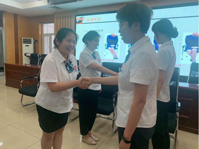 培訓(xùn)課上,培訓(xùn)老師通過講解案例與實際操作,向參訓(xùn)人員全面講解了儀容禮儀,儀態(tài)禮儀、微笑禮儀、手勢禮儀、介紹禮儀等相關(guān)知識,并組織參訓(xùn)人員進(jìn)行了現(xiàn)場實操練習(xí),讓職工對優(yōu)質(zhì)服務(wù)有了更深的認(rèn)識。