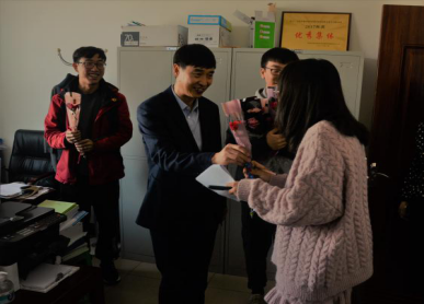公司黨委書記、工會主席郝關(guān)峰,董事長郭長安,為公司全體職工送上鮮花和祝福