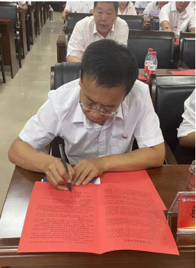 為促進黨風廉政建設(shè)責任制的落實,推進廉政風險預(yù)防機制建設(shè),增強黨員干部職工拒腐防變意識和風險防控能力,會上,公司針對權(quán)力運行的班子成員、內(nèi)部管理的環(huán)節(jié)干部、重要崗位工作人員簽署黨風廉政建設(shè)承諾書。