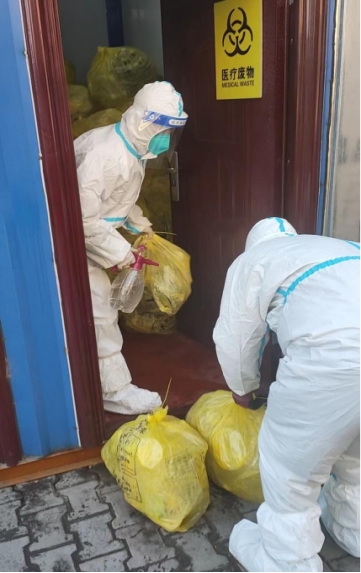 寒冬中有這樣一群人,他們?nèi)粘鐾須w,往返于三區(qū)各大醫(yī)院、隔離酒店、隔離卡點、傳染病醫(yī)院、發(fā)熱門診,穿梭在城區(qū)各大小區(qū),他們?nèi)蔽溲b,身著防護服,將一袋袋醫(yī)療廢物垃圾,安全轉(zhuǎn)運到集中處置點,徹底阻斷醫(yī)廢垃圾造成二次感染風(fēng)險,牢牢守住防疫最后一道防線。自從10月初以來,市污水處理公司醫(yī)廢垃圾轉(zhuǎn)運組全體工作人員以廠為家、閉環(huán)管理已經(jīng)40余天,他們放棄與家人團聚,與親人相伴,日復(fù)一日,兩點一線,晝夜兼程,在醫(yī)廢垃圾安全轉(zhuǎn)運戰(zhàn)場上默默付出,逆風(fēng)而行,用行動為抗擊疫情、阻斷病毒傳播貢獻自己的力量。
