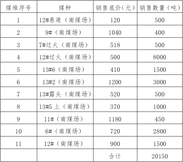 2.價格說明:含稅價、不含運費、場地自取,裝卸工作統(tǒng)一由我公司安排,煤價不包含裝卸費,裝卸費另付。