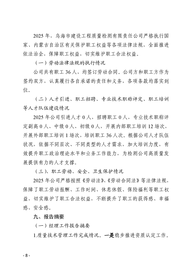 - 2025-03-10烏海市建設(shè)工程質(zhì)量檢測(cè)有限責(zé)任公司2024年度信息公開報(bào)告