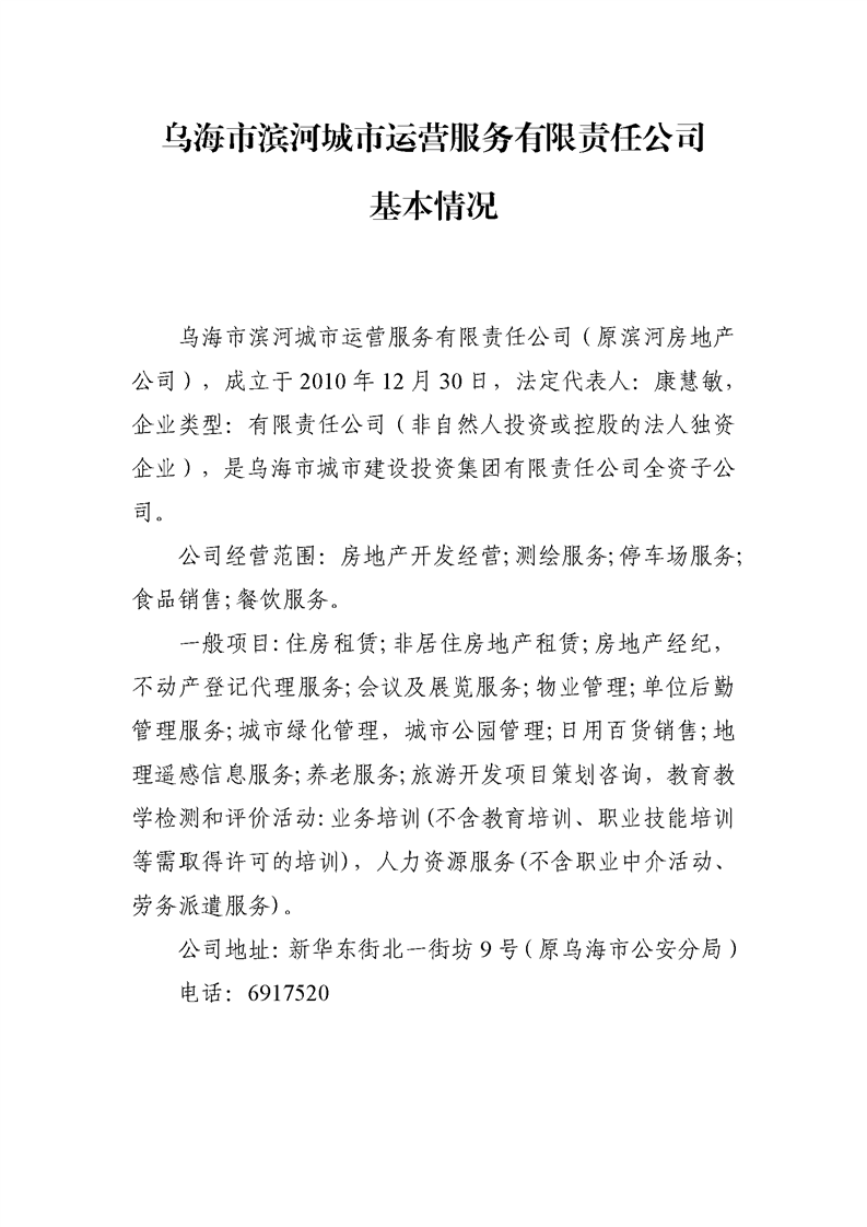 - 2024-07-09烏海市濱河房地產(chǎn)開(kāi)發(fā)有限責(zé)任公司2024年第二季度信息公開(kāi)