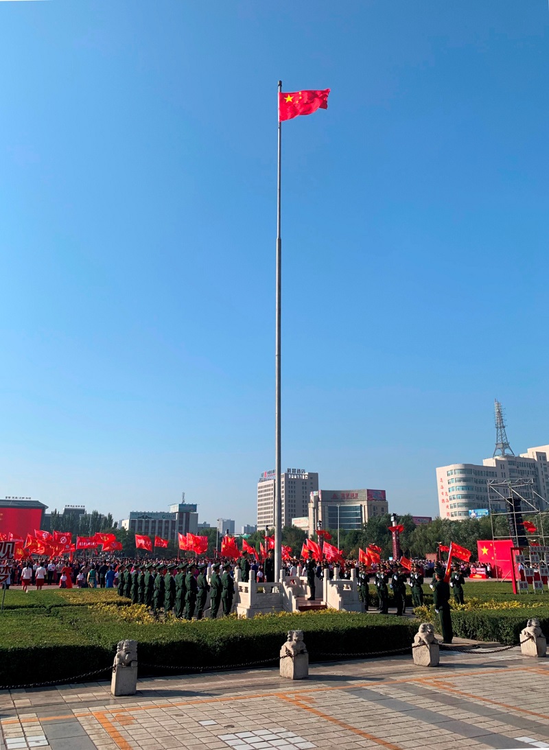 上午9時整,莊嚴的升國旗儀式正式開始。護旗隊隊員精神抖擻,邁著矯健有力的步伐,護衛(wèi)著五星紅旗走向升旗臺。在雄壯的《義勇軍進行曲》中,鮮艷的五星紅旗徐徐展開、冉冉升起、迎風飄揚。我公司參與人員整齊列隊、行注目禮、高唱國歌,向偉大祖國致以崇高敬意和美好祝愿。